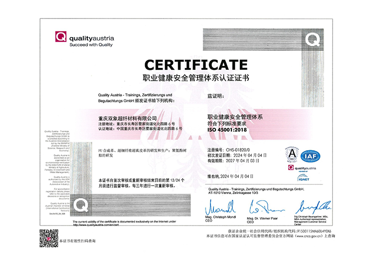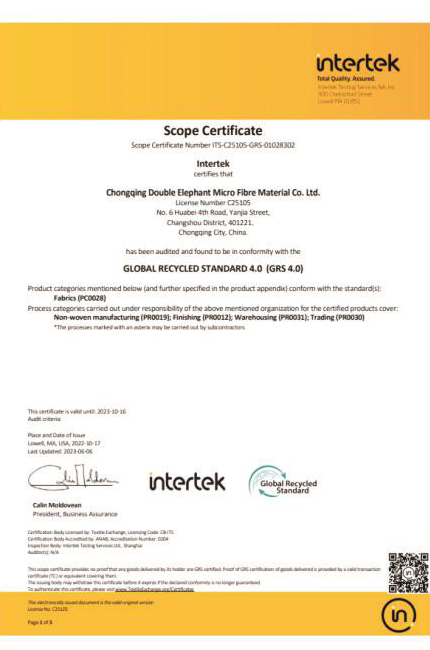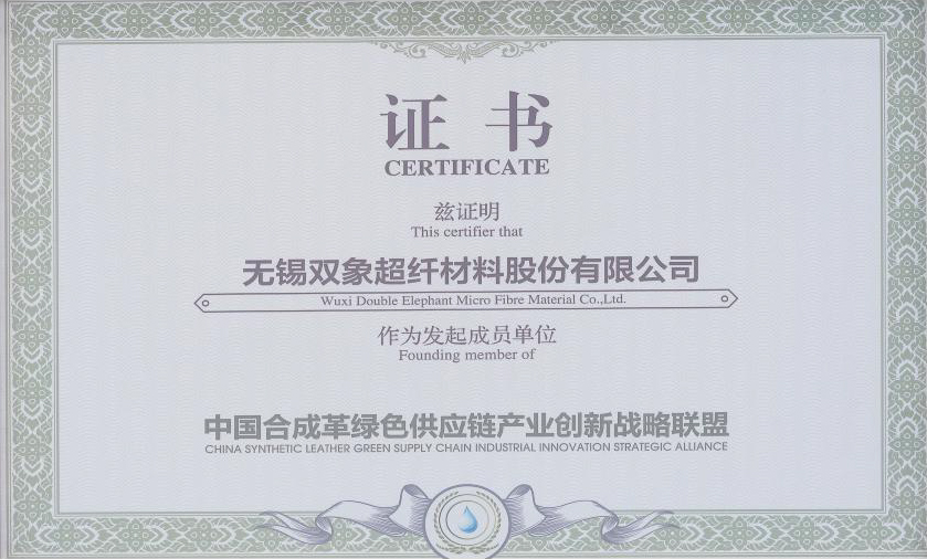 DE adheres to new development concept of innovation,coordination,green development,openness and sharing,takes high-quality development as the goal positioning,and strives to build a modern advanced manufacturing enterprise.DE is China's leading enterprise in artificial leather&synthetic leather manufacturing industry, Jiangsu Province high-tech enterprise,Jiangsu Province 100 key private science and technology enterprises,has undertaken and completed the "national 863 plan project","Jiangsu Province major scientific and technological achievements transformation project"and other national and provincial major scientific research projects,also has undertaken more than 30 national and industry standards drafting and revision work.It was awarded thetitle of"China Microfiber Synthetic Leather lnnovation Research and Development Base"by China Plastics Processing Industry Association. In 2019 DE has built the Double Elephant microfiber Chongging production base in accordance with the requirements of leading technology,intelligent manufacturing,advanced management and environmental friendliness,also this project was listed as amajor investment promotion project by the Chongqing Government,In April,2022,the"annual output of 30million meters of microfiber material phasel project"was put into operation,and was recognized as "Chongqing Digital Workshop"by Chongqing Economic and Information Technology Commission.In 2025microfiber materials phase ll projcet has been finished and start to produce. Double Eelphant Micro Fibre is forging ahead with the goal of being international advanced and leading in China"!Commited to become the leader of Chinese microfiber synthetic leather industry!